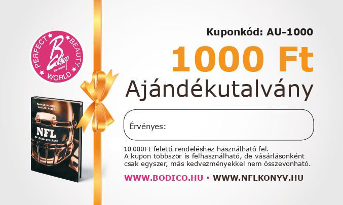 A válaszunk: Mind a két webáruházunkban! Ahogy azt nagyon sokan tudjátok, a fő profilunk a BODICO és a külön a könyvre létrehozott www.nflkonyv.hu oldalon is, akár egy újabb könyv, vagy bármely kedvezményes NFL-es csomag személyes vásárlásánál vagy rendelésénél! Ezzel a lehetőséggel már többen éltetek is.
