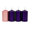 Különleges metál színű 3 db lila és 1 db rózsaszín színű gyertyából álló adventi gyertya csomag.