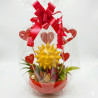 "Szerencsehozó Manócska" kerámia asztaldísz 10 szál kis virággal + 1 db manócska, kerámia kaspóban, díszítésekkel