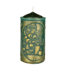 Ünnepi exkluzív hengergyertya. * 7,5 cm széles x 17 cm magas * különleges motívumokkal dombornyomva, arannyal lefestve * Cseppmentesen, befelé ég, 75-76 óra égési idővel! *