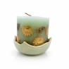 Szárított virágos, illatos nagy henger gyertya, átvilágítós + Cikk-Cakk kézműves kerámia tálka, mázas